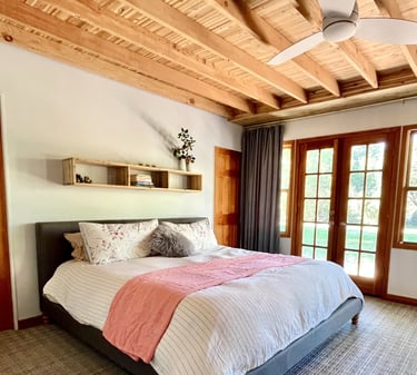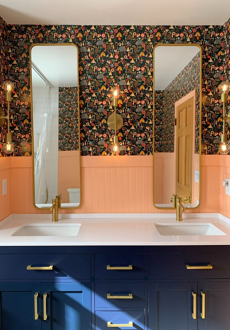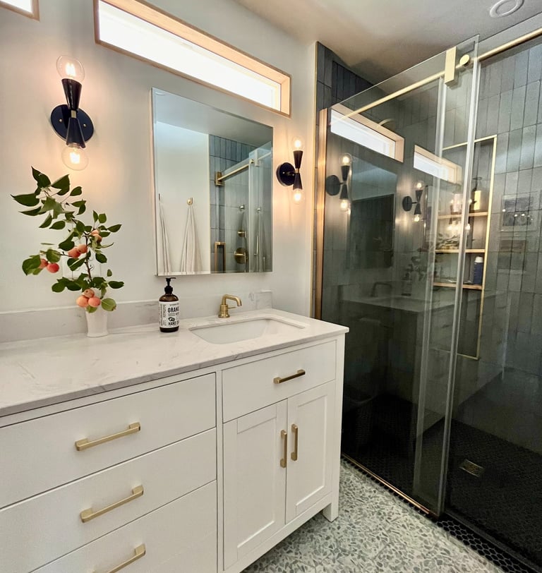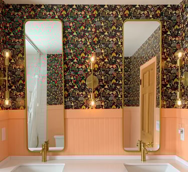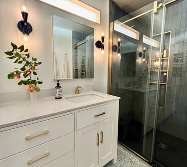 Renovated primary suite and kid's bathroom including new layout, ceiling, fixtures and finishes throughout